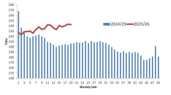 Our Catalogue: (Sale 20) Avg : Tk 255.49, Sold 68.72% , (Sale 19) Avg : Tk 247.77, Sold 60.60%