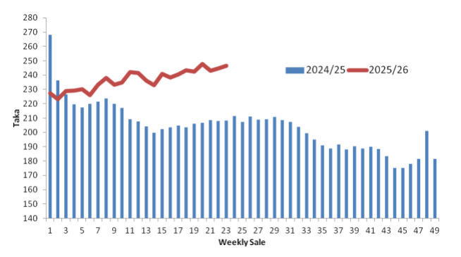 Our Catalogue:  (Sale 24)  Avg : Tk 254.32, Sold 70.64% , (Sale 23)  Avg : Tk 253.17, Sold 82.12%